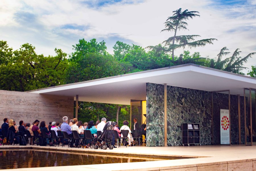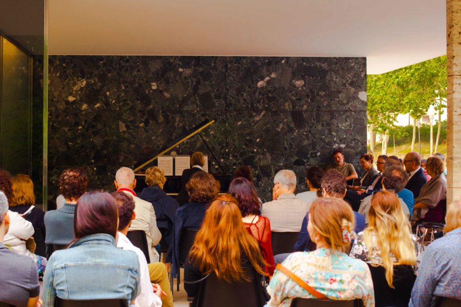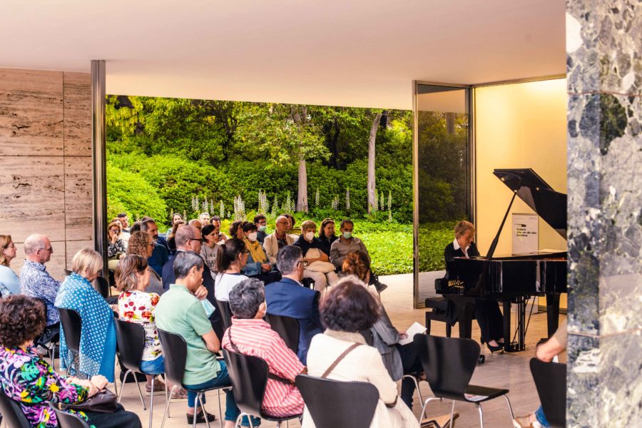 La Fundació Mies van der Rohe i la Fundación Goethe, us convidem a un concert de piano al Pavelló Mies van der Rohe convertit en Pavelló de Música a càrrec de la pianista berlinesa Corinna Simon.