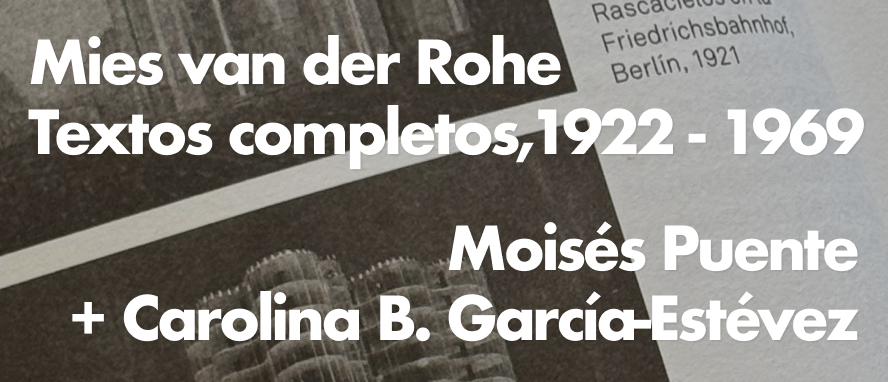Et convidem a la conversa entre Moisés Puente i Carolina B. García-Estévez que acull el Pavelló Mies van der Rohe en ocasió de la presentació del llibre Mies van der Rohe. Textos completos, 1922-1969. Ensayos, conferencias y conversaciones, editat per Puente Editores amb el suport de la Fundació Mies van der Rohe.