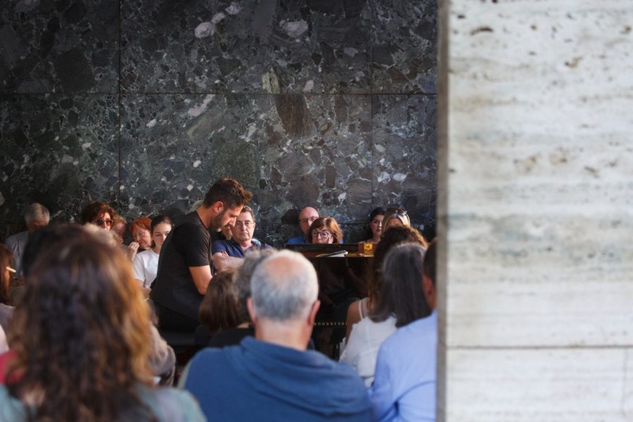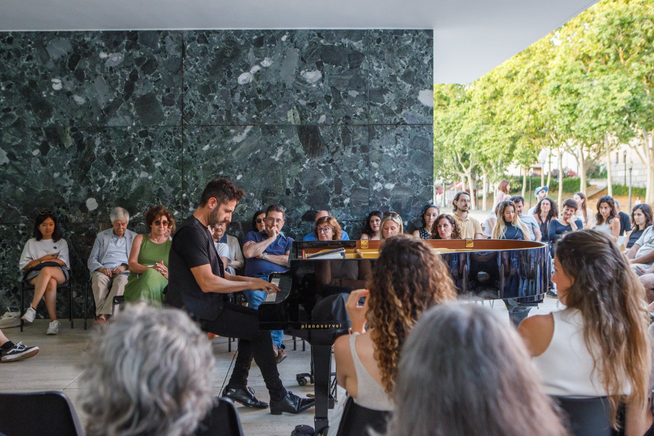 L’arquitecte i pianista Gerard Guerra López omplirà de so l’espai arquitectònic del Pavelló Mies amb una intervenció pianística, teixint espais sonors entre textures i reflexos. Interpretarà en directe música pròpia creada al voltant del terme musitectura, concebuda com a una simbiosi particular de la música i de l’arquitectura, del so i de l’espai, fruit de la seva recerca artística.