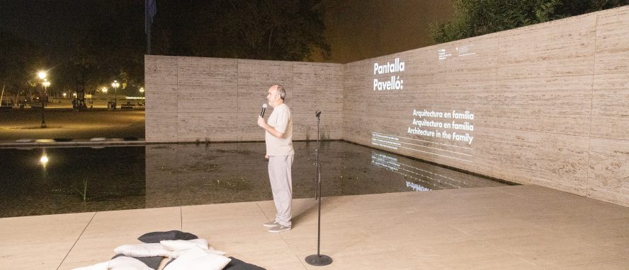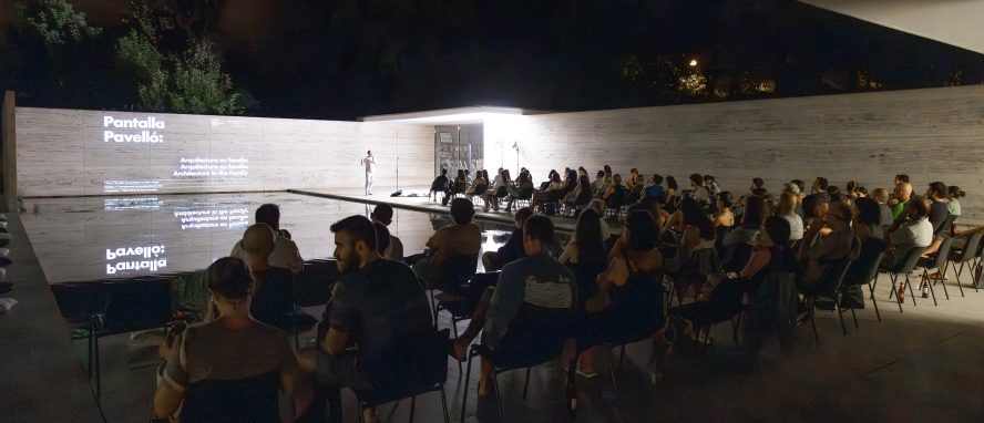 ‘Pantalla Pavelló’ és el cicle de cinema, projectat directament a sobre el travertí del Pavelló Mies van der Rohe que s’endinsa en la relació entre l’espai construït, els seus límits i les seves fronteres, i els habitants que hi resideixen, i com aquesta relació s’accentua i revela en la seva màxima expressió. L’arquitectura, i amb ella les ciutats, determina i influeix en la manera de viure de la mateixa manera que ho fan les nostres normes de convivència i les lleis que regulen les societats. Una reflexió sobre l’espai construït que ens envolta, les ciutats que volem i, per tant, la societat que desitgem.