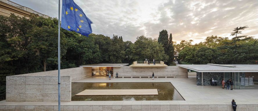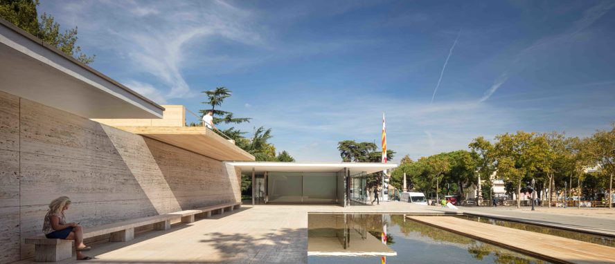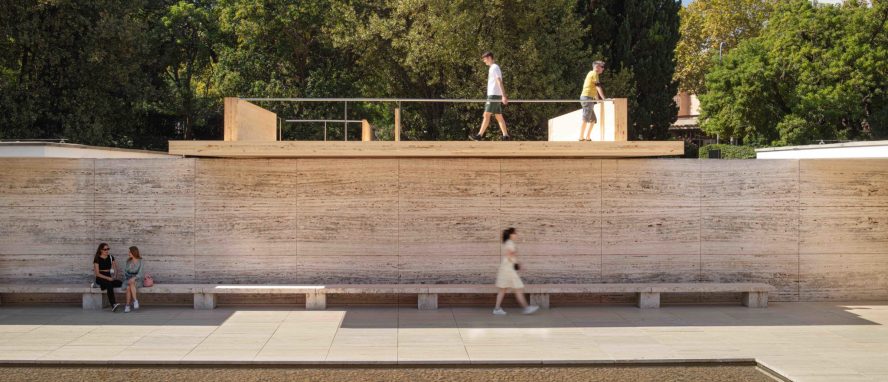 Beyond the summer cycle Pantalla Pavelló, the projection on the travertine of the documentary “Mass is More” reviews and analyzes the radical transformation that took place a year ago in the framework of the European Forest City 2022, a large laminated wood structure bring to the Mies van der Rohe Pavilion with the artistic intervention of the same name.